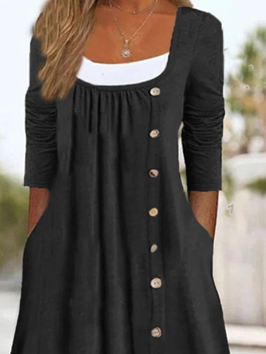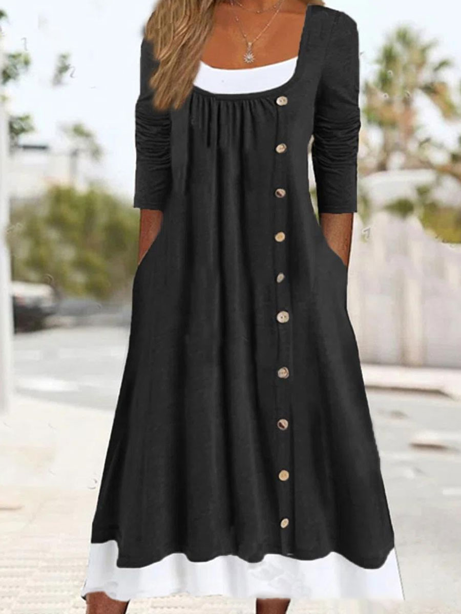 Round Neck Casual Loose Contrast Color Stitching Long Sleeve Midi Dress