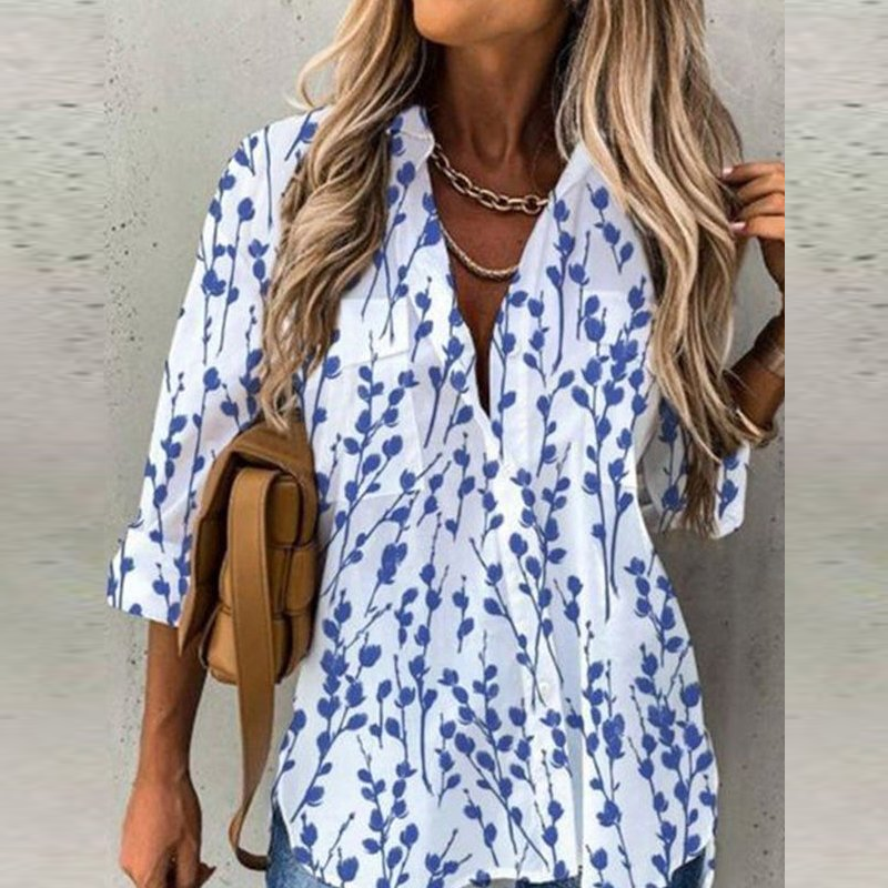 Fashion Floral Print Lapel Long Sleeve Shirt